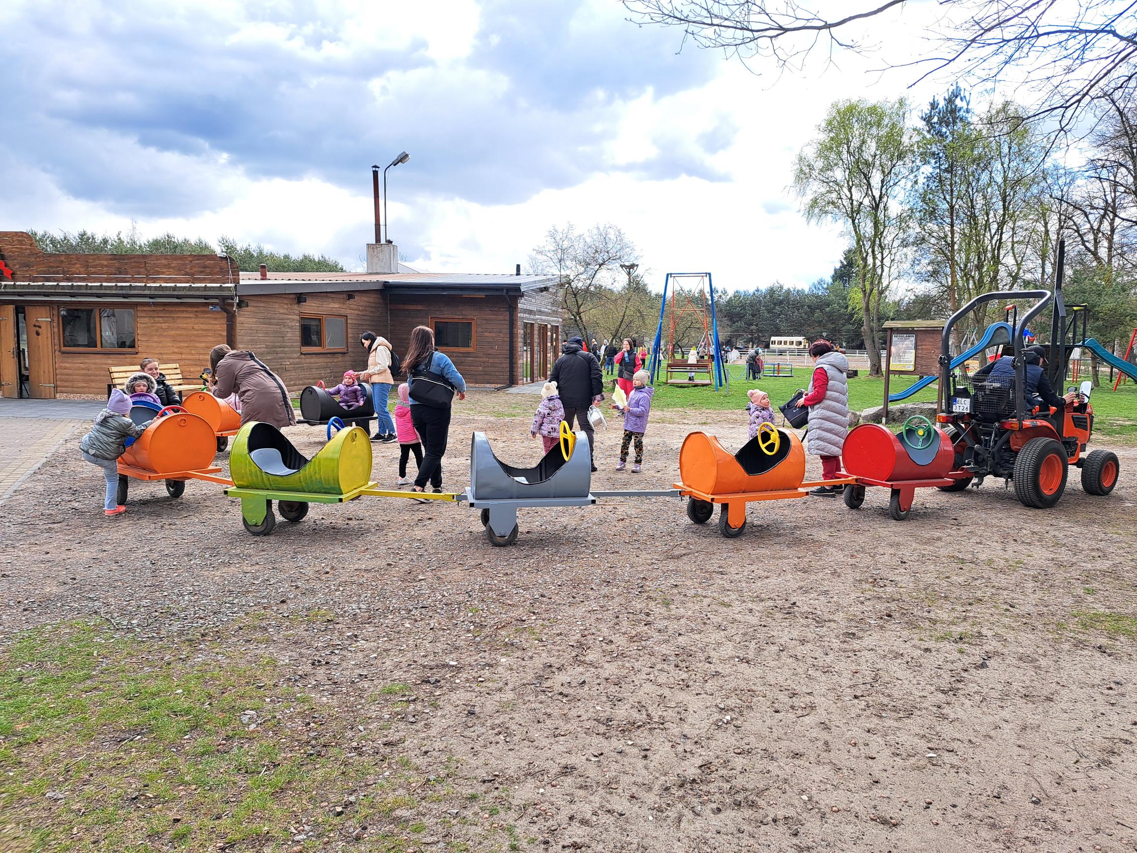 W Stajni u Kowala było mnóstwo atrakcji dla dzieci: dmuchańce, zjeżdżalnie, cymbergraj, przejazd wagonikami do lasu, przejażdżka konno, kiełbaska z ogniska, wata cukrowa, popcorn itp.